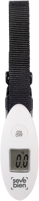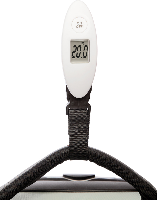 10,5 x 2,6 cm. Plástico. Balanza digital de mano, botón de off/on. Cuenta con una correa para enganchar en la manilla de la valija/bolso al elevar devuelve el peso. Peso máximo soportado 40 Kg. Presentación en caja de regalo.