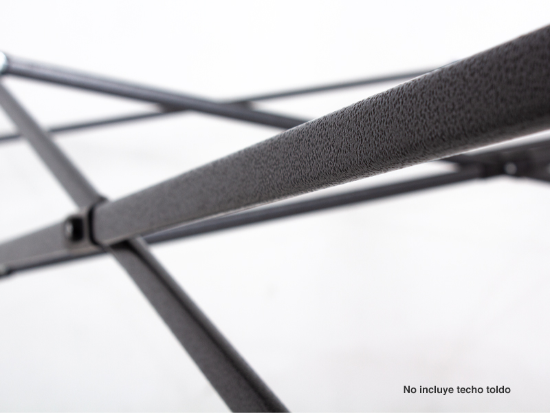Base plegable de Acero esmaltado, para toldo araña de 3 x 3 m. Altura 2.1m. Se entrega plegada en una caja de cartón de 150 x 22 x 20 cm (14kg).