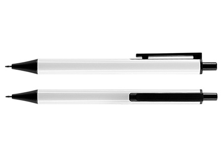Bolígrafo Metálico blanco “Phantom”, con terminales plásticos negros. Diseño simple y moderno. Escritura negra.