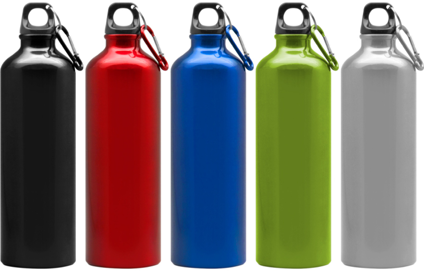 Ø  7,2 x 25,5 cm. Capacidad 750 ml. Aluminio. Botella de aluminio. Tapa a rosca plástica y gancho metálico.