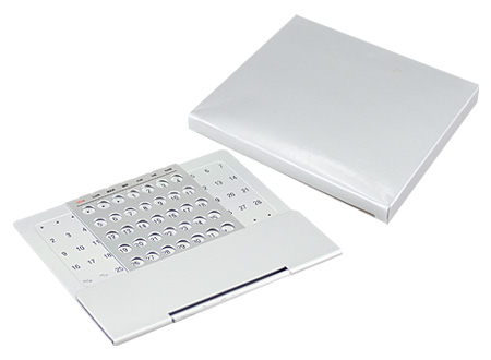 Calendario Eterno Metálico de escritorio, para todos los días, meses y años. Con ventana semanal móvil en español. Presentación en cajita plateada de regalo.
