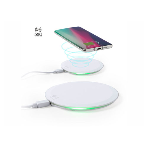 Cargador inalámbrico circular, con función carga rápida de 10W. Base antideslizante e indicador LED de estado de carga. Con puerto USB y capacidad para cargar dos dispositivos de forma simultánea, Cable micro USB incluido y compatible con smartphones con tecnología de carga inalámbrica. Presentado en atractiva caja de diseño. Inalámbrico 10W
