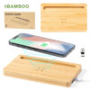 Cargador organizador inalámbrico 15W de línea nature. Con función soporte para smartphone y salida USB de 2.000 mA. Permite cargar de manera simultánea hasta 2 dispositivos (1 mediante carga inalámbrica y 1 mediante cable). Hecho en bambú procedente de cortes naturales y compatible con dispositivos equipados con tecnología de carga inalámbrica. Amplia superficie de marcaje y presentado en caja individual de diseño eco en cartón kraft. Inalámbrico 15W. Salida USB