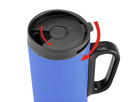 Mini-tazón para café modelo "Tritan" de Acero inoxidable doble pared aislante, cuerpo exterior color. Tapa de plástico PP negro con dosificador móvil.