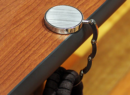Colgador Metálico Grande de sobremesa para Bolsos y Carteras, modelo "Spiral". Presentación en estuche laminado negro con cuna aterciopelada.