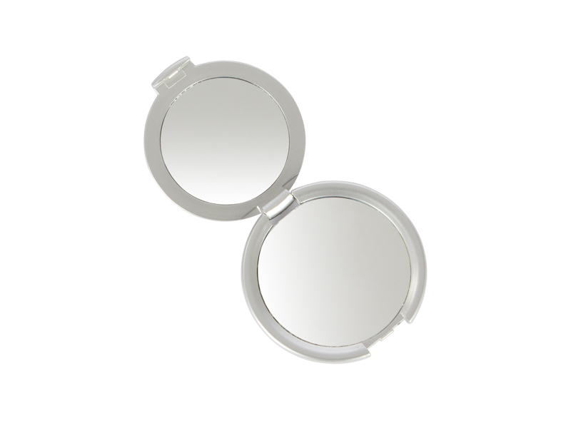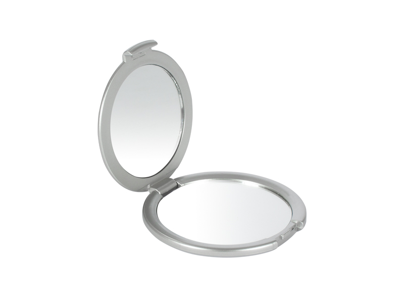 Espejo plástico plateado redondo doble, contiene 1 espejo normal + 1 espejo con aumento.