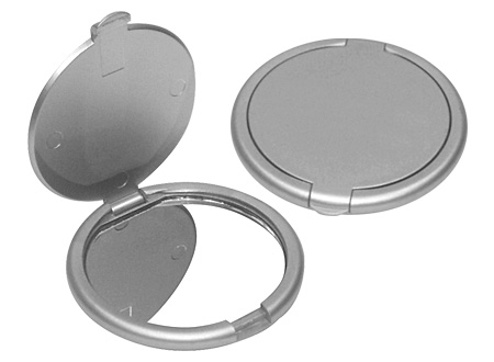 Espejo plateado redondo de bolsillo.
