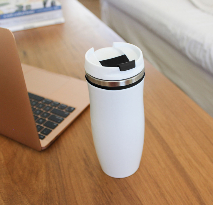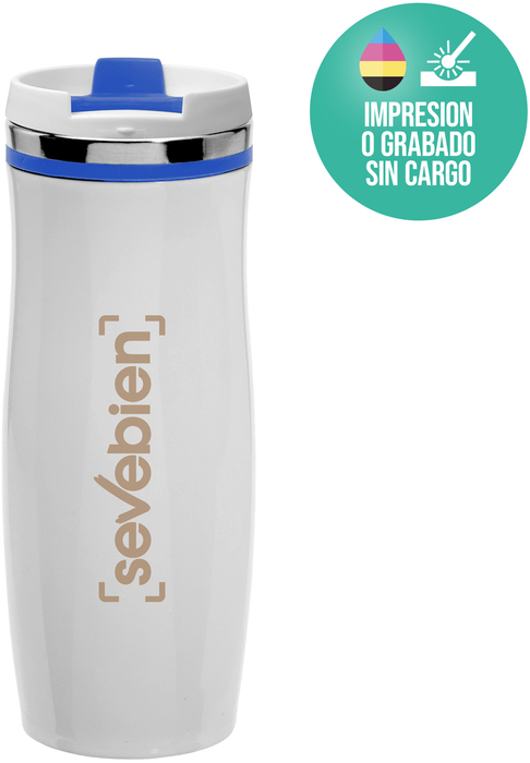 Ø 6,8 x 19,5 cm. Capacidad 380 ml. Acero inoxidable. Mug doble pared. Interior de acero 304 y exterior de acero 201. Mantiene las bebidas frías o calientes por más tiempo. Presentación en caja de regalo.
