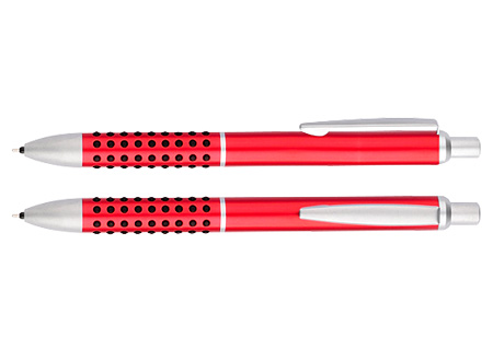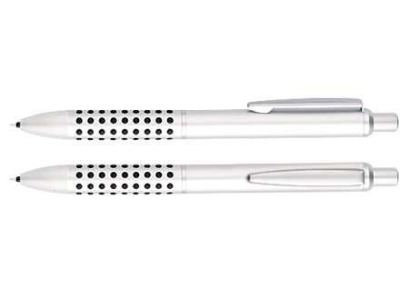 Portaminas metálico satinado modelo "Caterpillar", con lunares de goma negra que brindan una suave sensación de masaje dactilar al escribir.