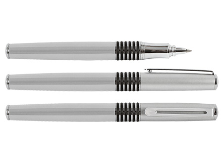 Roller Ball Metálico modelo “Manager”, cuerpo de color metalizado y tapa plateada satin. Tinta negra.