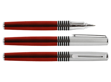 Roller Ball Metálico modelo "Manager", cuerpo de color metalizado y tapa plateada satin. Tinta negra.