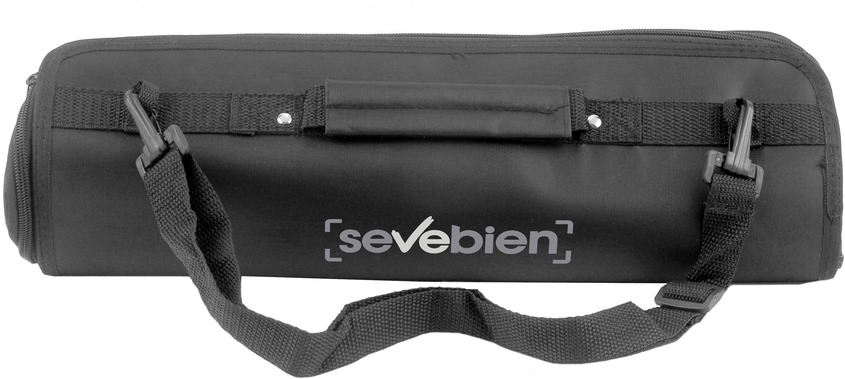 Ø 11,5 x 42,5 cm. Polyester 210D, metal y madera. Set de 10 piezas: Espátula, tenedor parrillero con mango, pinza, cuchilla, 2 pinchos para brocheta y 4 pinchos pequeños. Estuche con cierre y correa regulable.